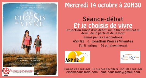 Les associations ASP 82 et Jonathan Pierres Vivantes animent le mercredi 14 octobre à 20h30 une projection suivie d'un débat sur le thème du deuil, de la perte et de la mort.